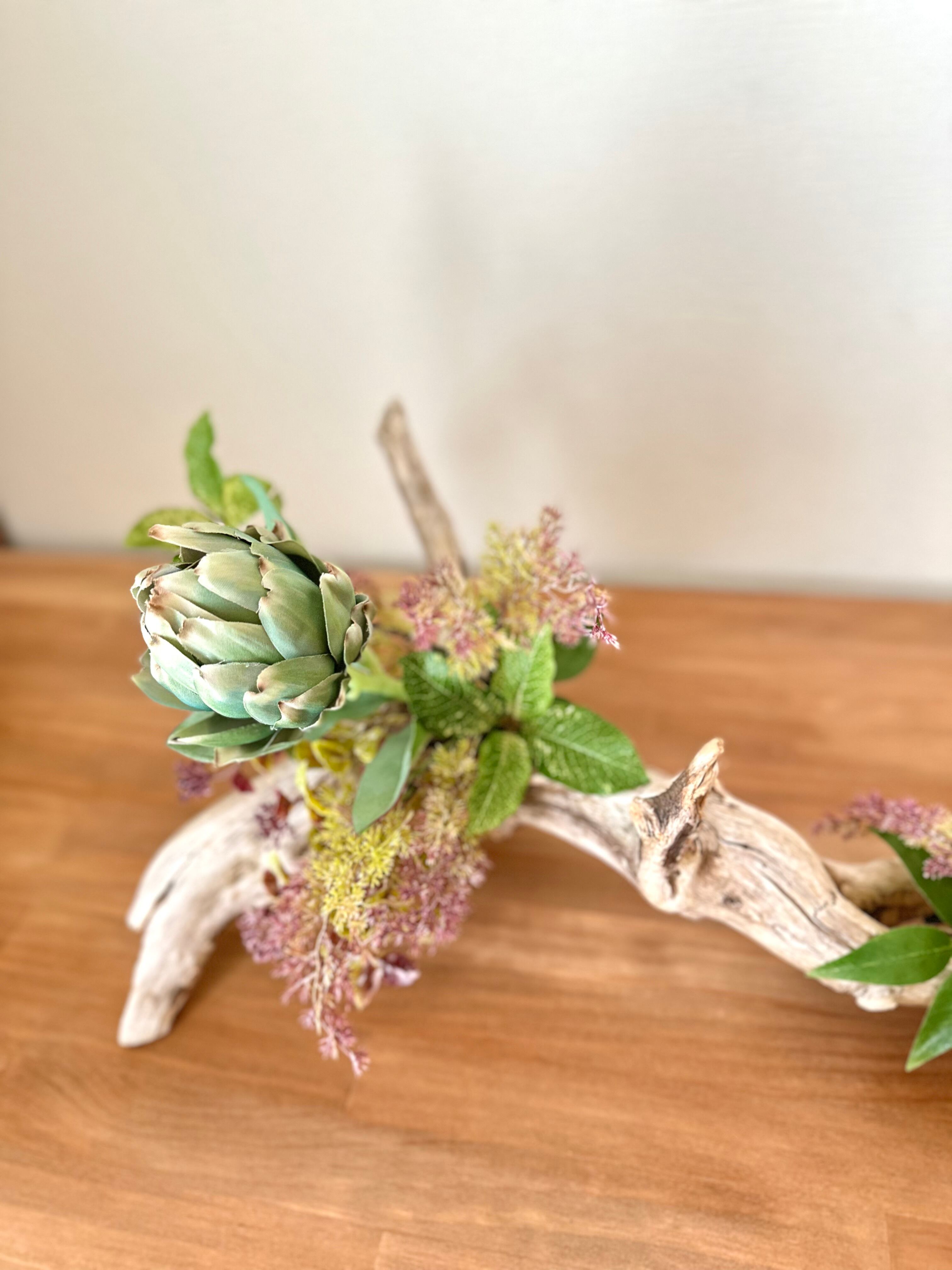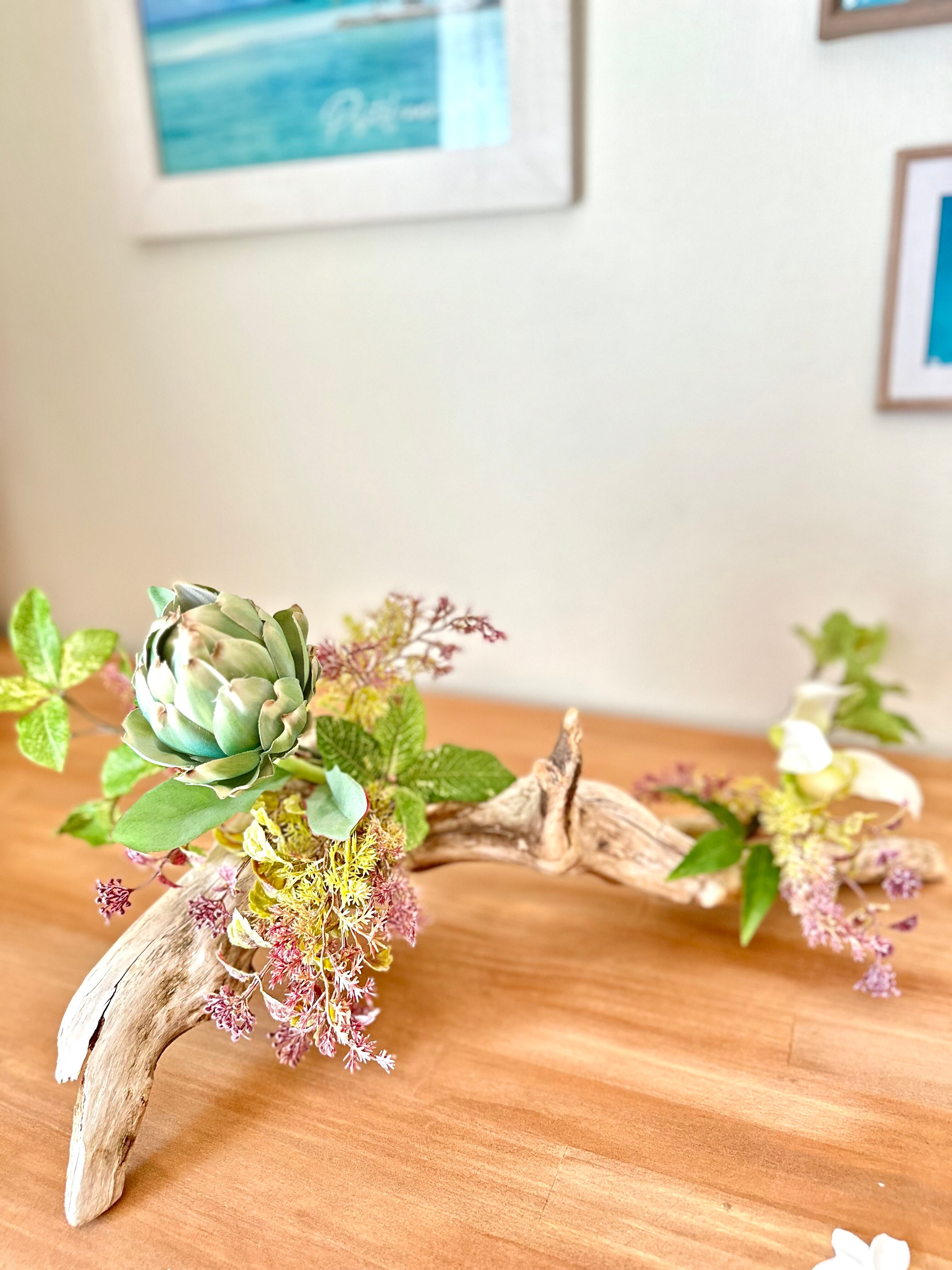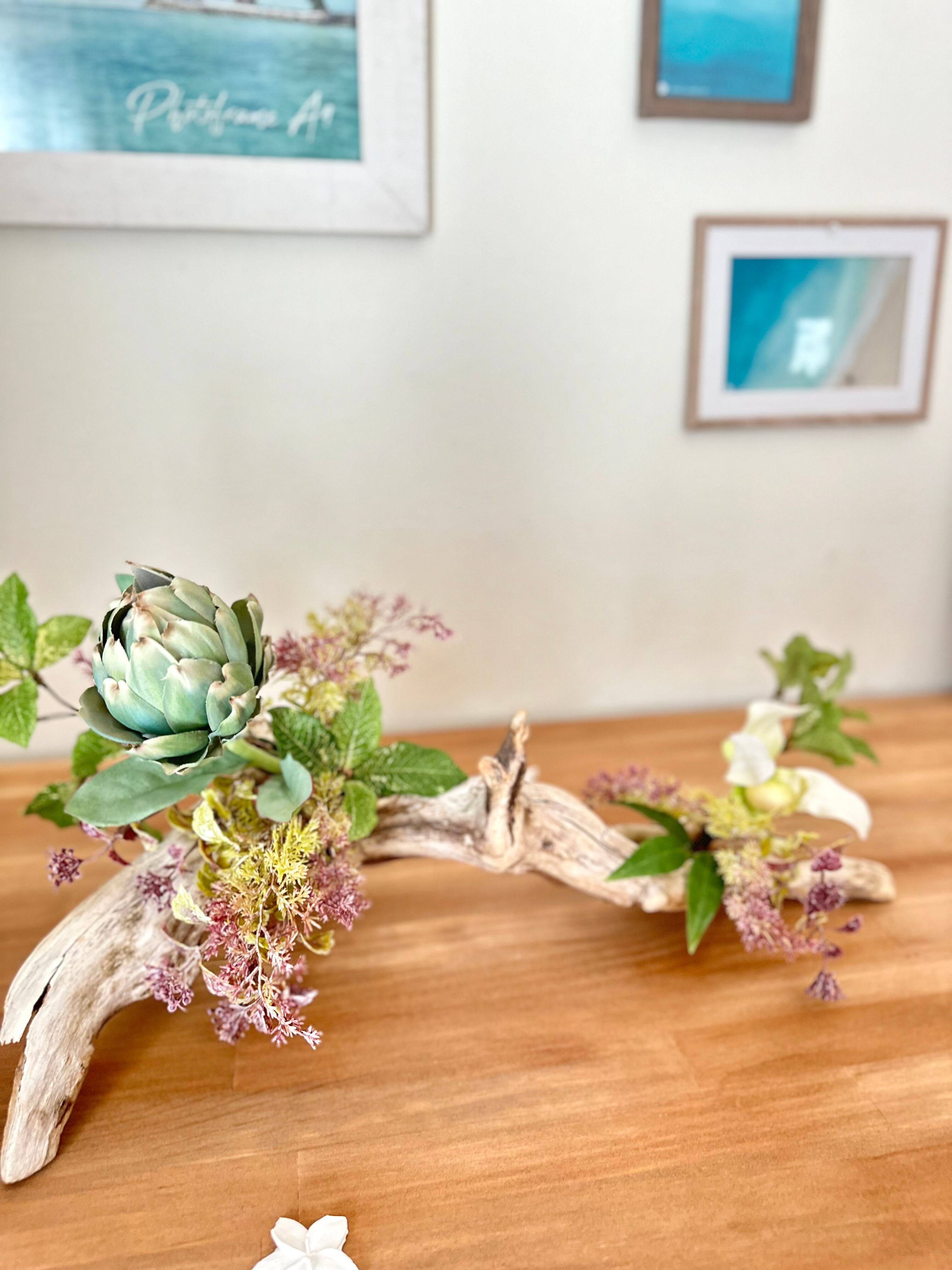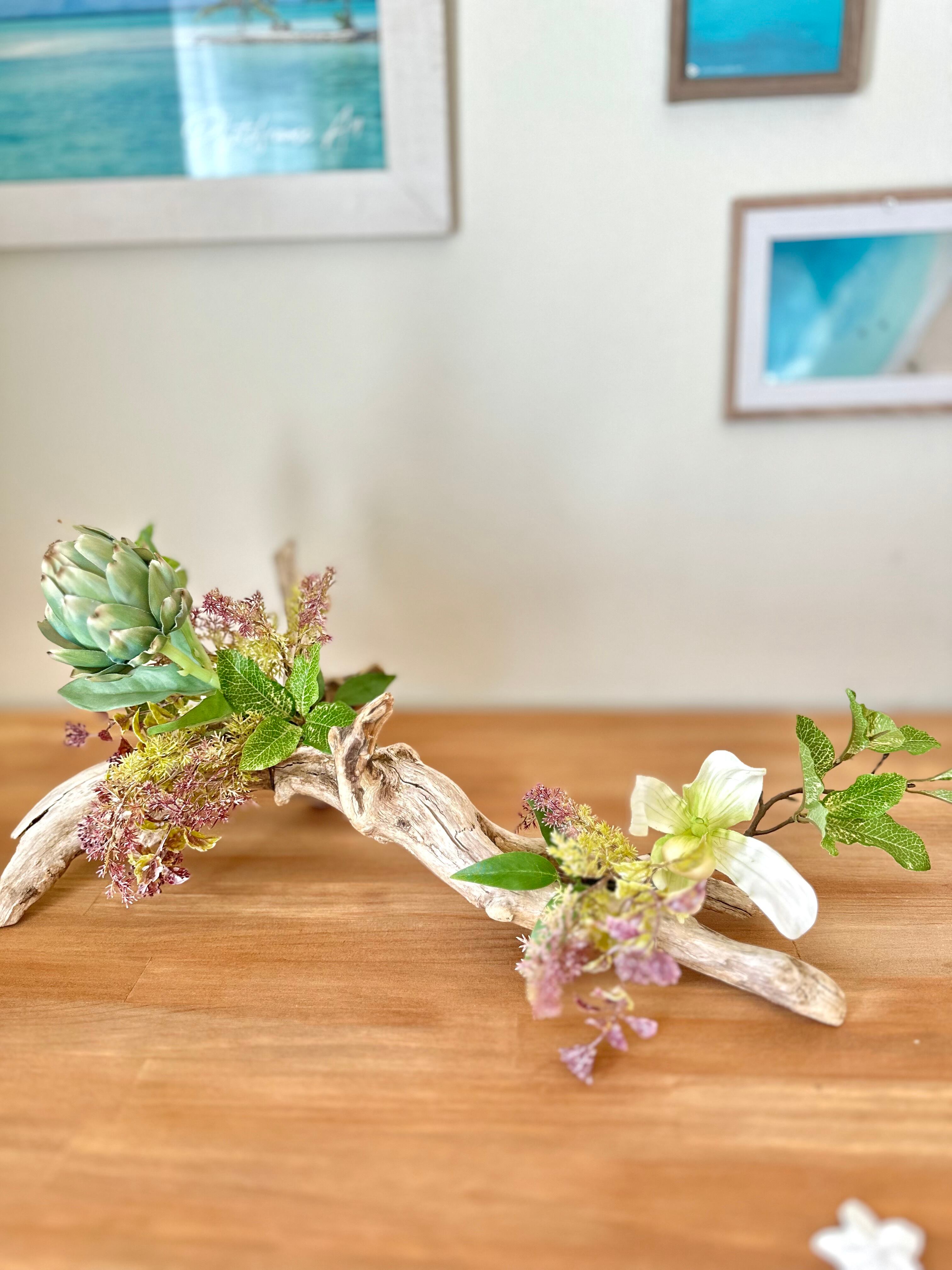 流木を使って、南国風なアレンジを